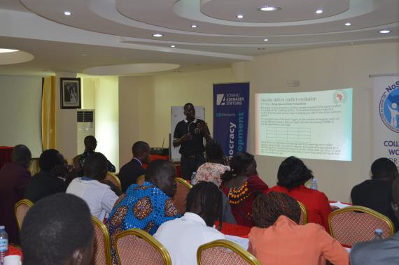 Behind poverty, conflicts remain Africa’s second largest challenge to tackle nowadays. Political, religious, ethnicity and domestic related conflicts negatively impact the continent and tear human relationships apart. Over the last decades lots of interventions and measures had already taken place aiming at resolving these conflicts. As a key tool for enhanced coexistence, the peaceful conflict resolution approach is one essential skill for individuals and communities. Increasing people’s awareness for the different causes of conflicts is one leading aspect to realize this method. This one-day capacity building workshop in Kampala, conducted by KAS and NoSSCOU, fostered the participants to acquire conflict management and resolution skills.