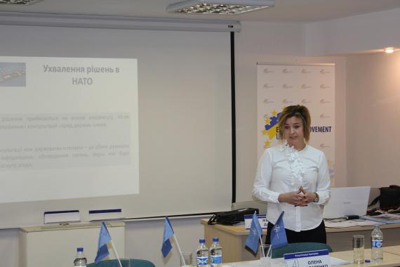 Im Allgemeinen ging es bei den Diskussionen um die Effizienz bzw. Ineffizienz der NATO und die unvorhersehbare Entwicklung der Europäischen Union in der Zukunft. Zudem erörterten die TN intensiv mögliche Lösungen der Rückführung des Donbass, der Krim und die Korruptionsbekämpfung in der Ukraine. Während des Simulationsspiels "Best practices der Entscheidungsfindung und die NATO" bekamen die TN eine Aufgabe zur Verbesserung ihrer eigenen Zukunft, damit sie Interessen einzelner NATO-Mitgliedstaaten als globaler Player besser nachvollziehen konnten.