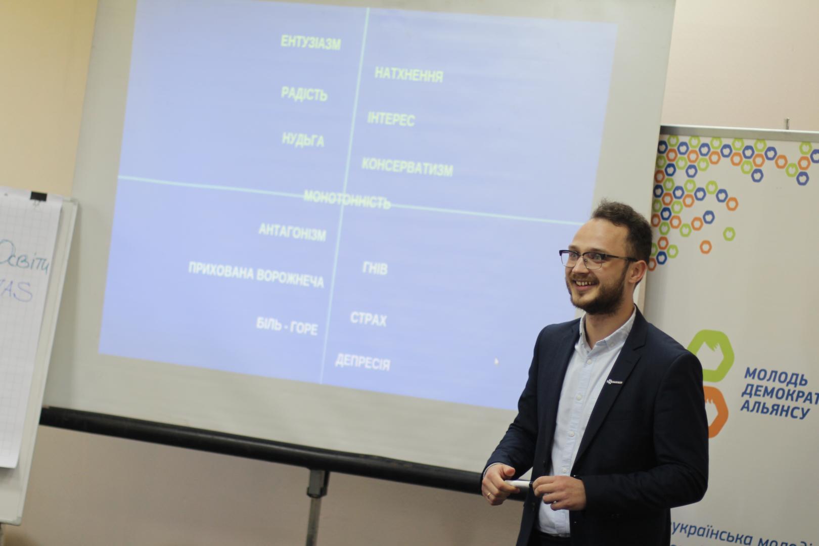 Halyna Bordun, a coach, mentor and the deputy of Lviv regional council from “Samopomich” party, and Oleh Berestovy, the deputy of Brovary city council, head of the “Democratic alliance” fraction, businessman in education sphere, became the speakers of the first working day. Halyna Bordun spoke about the formation of team through political recruiting. She explained how and whom to engage in team; what to offer these who want to be part of the team; why to engage. According to Bordun, in case of political parties it is important to be present at events that touch different issues and speak about party position on these issues. Besides, the communication with voters through social networks is of huge importance but it is not the reason to forget about the traditional ways of communication and informing as for instance party newspaper. It should be also remembered that each contact is significant and the initial motivation of people who join the team must be taken into consideration and respected.