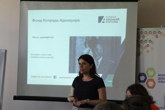 The project “Academy of political education” exists more than 5 years and has for its aim political education for the representatives of political party “Democratic Alliance” and its youth wing. This year for the first time the seminars were organized also for the representatives of “Samopomich”. Each group consisted of 24 participants, where each party was represented by 12 people from different regions of Ukraine. The seminar started with ice breaking activity and greeting words from organizers. In their greeting words the organizers emphasized the importance of informal education for young politicians. Moreover, a certain attention was given to the presentation of KAS work in Ukraine.