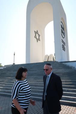 In diesem Tal unweit der Stadt ermordeten die Deutschen im Zweiten Weltkrieg mindestens 16.000 jüdische Einwohner Charkiws. Die Schätzungen der tatsächlichen Opferzahl reichen noch weit höher. Iryna Ferentseva, die Leiterin der Gedenkstätte, führte den Gast aus Deutschland über das weiträumige Gelände und berichtete zum Thema Erinnerungskultur in der Sowjetunion und in der heutigen Ukraine. So wurde erst gegen Ende der 1980er Jahre erstmals öffentlich darüber berichtet, dass dieses eigentlich idyllisch gelegene Tal Schauplatz des nationalsozialistischen Massenmords an der jüdischen Bevölkerung Charkiws war. Die heutige Gedenkstätte wurde dann Ende 2002 eingeweiht.