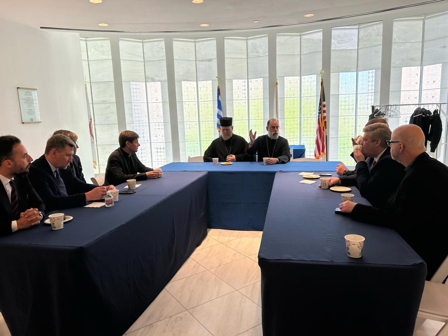 На початку подорожі делегація відвідала грецьку православну церкву Святого Миколая, розташовану безпосередньо біля Меморіалу 11 вересня. Церква була повністю зруйнована під час терактів 11 вересня 2001 року, коли на неї впали вежі. У відбудованій церкві члени Всеукраїнської ради поспілкувалися з грецькою православною громадою про історію її страждань. Зокрема, було обговорено такі питання, як релігійне подолання страждань, надія на новий початок і необхідність миру. Особливе враження на делегацію справили сучасні ікони церкви, що поєднали християнську символіку й події 11 вересня.