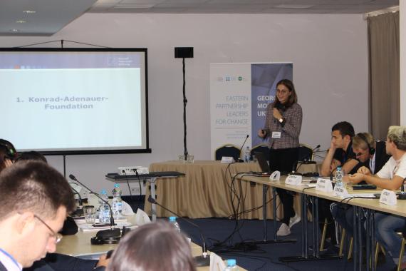 At the beginning, Rostyslav Tomenchuk discussed the external image of the Eastern Partnership Countries. The participants worked on strategies how they could improve, as future political or civil society leaders, the way how the European Union and the NATO sees their countries. In the course of the discussion a participant stated: “We should focus on the positive developments in our country (Ukraine) and not only attract attention with bad news and scandals.”