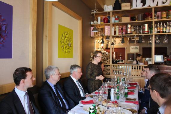 Auch bei einem gemeinsamen Abendessen mit den jungen Abgeordneten der pro-europäischen Parlamentsgruppe „Euro-Optimisten“ wurden Reformbemühungen, die Rolle des Parlaments und aktuelle Entwicklungen bei der Regierungsumbildung besprochen. Weitere Gespräche führten die deutsche Delegation darüber hinaus mit dem stellvertretenden Leiter der Präsidialadministration Dmytro Schymkiw und Vertretern des Antikorruptionsbüros.
