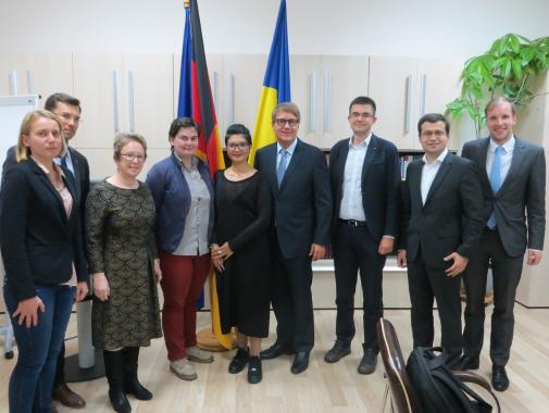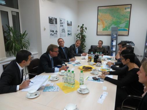 Bei einem Gespräch mit Vertretern der Zivilgesellschaft sprach Ronald Pofalla mit der Mitgründerin der Nichtregierungsorganisation KrimSOS, einem Vertreter der Plattform für Reformen "Reanimation Package of Reforms", einer Expertin des CEDOS Think Tank, einer Genderaktivistin sowie einem Vertreter der Energie-NGO DiXi Group. Im Gespräch berichteten die Vertreter über ein weites Themenspektrum, angefangen mit den bisherigen Reformerfolgen und der weiteren Reformagenda, über die notwendige Verbesserung der Anti-Diskriminierungsgesetzgebung bis zum Monitoring von Menschenrechtsverletzungen auf der Krim. Der ehemaligen Kanzleramtsministers Pofalla zeigte sich beeindruckt von den Aktivitäten der Nichtregierungsorganisationen und gesellschaftlicher Aktivisten, deren Arbeit ein klarer „Ausdruck einer offenen Zivilgesellschaft“ darstellt.