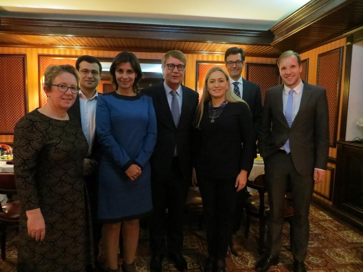 Bei einem Gespräch mit den Abgeordneten des ukrainischen Parlaments Werchowna Rada standen die Verfassungsreform und der Minsker Prozess im Mittelpunkt. Die Parlamentarier, die der fraktionsübergreifenden Gruppe der „Eurooptimisten“ angehören, betonten, dass die Ukraine mit der ersten Abstimmung über die Verfassungsänderungen im August 2015 schwierige Schritte eingeleitet hat und bereits ist, auch weiterhin ihre Verpflichtungen aus der Minsker Vereinbarung umzusetzen. Gleichzeitig müssen aber auch von russischer Seite grundlegende Verpflichtungen, wie die Einhaltung des Waffenstillstands, erfüllt werden, was die Abgeordneten aktuell nicht sehen würden. Die Eurooptimisten im ukrainischen Parlament vereinigt reformorientierte Abgeordnete, die sich für den europäischen Weg und die Umsetzung des EU-Assoziierungsabkommens mit der Ukraine einsetzen.