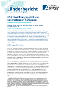 Ein „Weiter so“ sollte es in diesem Bereich unter US-Präsident Donald Trump allerdings nicht geben. Dies wurde spürbar, als das vom Weißen Haus vorgeschlagene USAID-Budget für das Fiskaljahr 2018 Kürzungen in Höhe von 33 % vorsah und im US-Kongress lebhaft diskutiert wurde. Um jedoch das Ansinnen der US-Administration in einen Kontext zu bringen, ist eine Betrachtung der außenpolitischen Schwerpunkte, die das Weiße Haus im Dezember 2017 vorgestellt hat, unerlässlich.