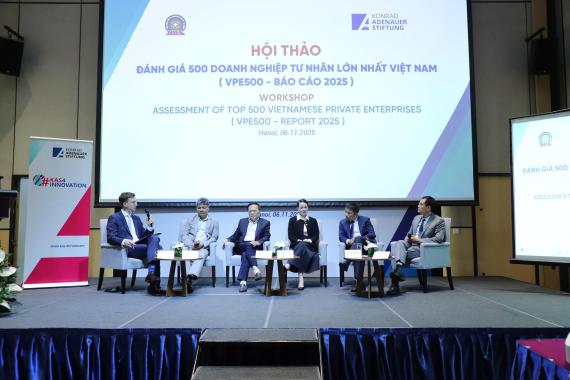 Hanoi, November 6, 2025 - Konrad-Adenauer-Stiftung Vietnam and the National Institute for Economics and Finance (NIEF) under the Ministry of Finance co-hosted the workshop “Assessment of Top 500 Vietnamese Private Enterprises (VPE500 – Report 2025)”. The event brought together policymakers, economists, business executives, and researchers to discuss new evidence on the structure, performance, and policy environment of Vietnam’s largest private enterprises.