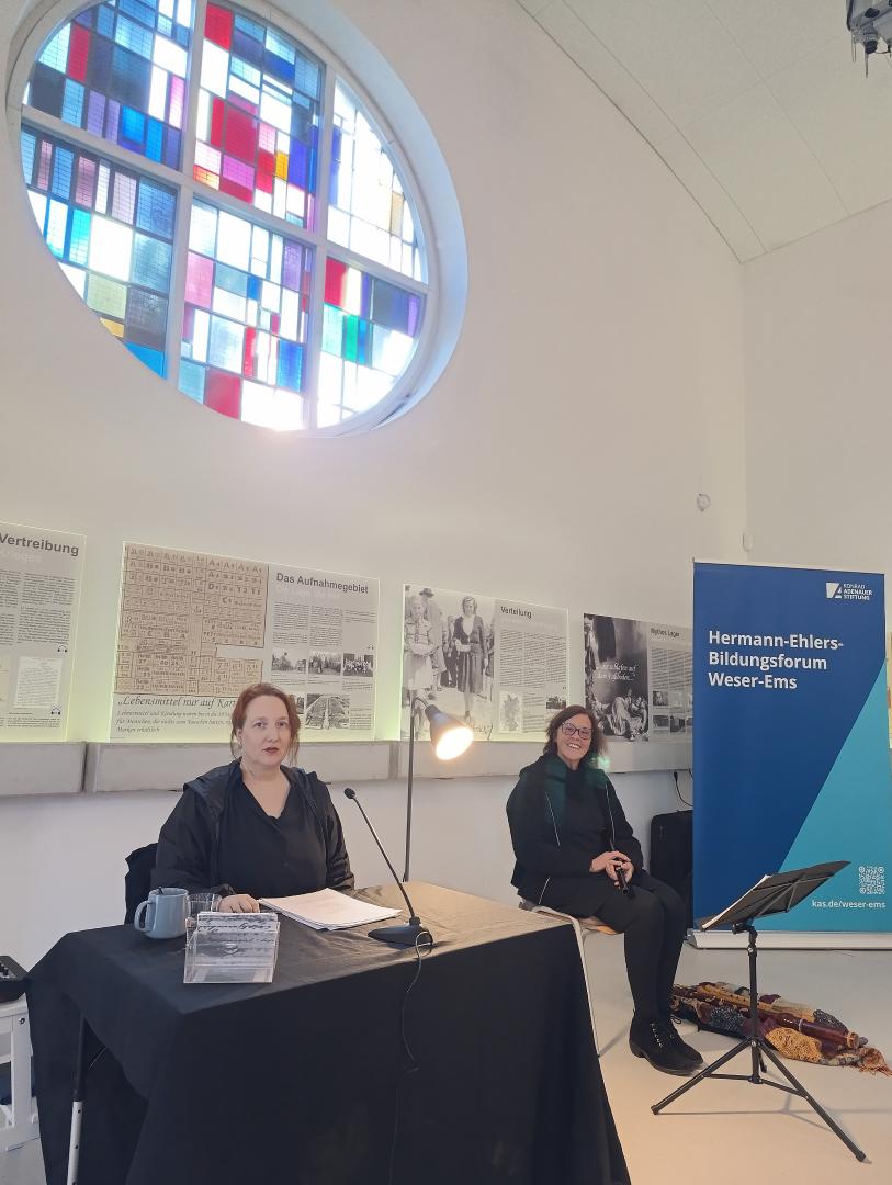 „er Pastor eröffnete den Abend und trug mit einführenden Worten zur Bedeutung des Denktages bei. Anschließend zog Anja Bilabel sofort die Aufmerksamkeit der Zuhörer auf sich. Mit den Worten „Den Faschismus habe ich immer gehasst“ von Inge Mülle eröffnet sie das Hörstück und lässt die Hörer eintauchen in die düstere Realität der Schriftstellerin. Inge Mülle verlor ihre Eltern bei einem Luftangriff und war selbst drei Tage unter den Trümmern verschüttet. Es folgten Werke wie „Ich höre das Herz des Oleanders“ und „Mein Sohn“ von Rose Ausländer. Bilabel berichtete über Ausländer, die mit schmerzen nach Amerika auswanderte, lange Zeit überwand sich die Schriftstellerin nicht, auf Deutsch zu schreiben. Der erste Teil des Programms endete mit „Endphase“ von Johanna Moosdorf, deren Werk fortschrittliche Frauenfiguren und den noch wenig aufgearbeiteten Faschismus im Alltagsleben thematisierte.