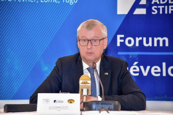 The forum was opened by KAS Abidjan Resident Representative and PDWA Director Dr. Stefanie Brinkel, the German Ambassador to Togo H.E. Mr. Matthias Veltin, and the Chairman of the Finance and Economic Development Committee of the Togolese National Assembly, He. Mawussi Djossou Semondji.