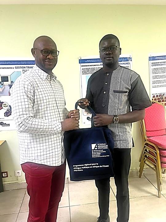 Mr. Kevin Anvo, program manager at the Konrad-Adenauer-Stiftung (KAS) Regional Program for Political Dialogue in West Africa (PDWA), then took the floor. He introduced the program and its grantees, thanked the municipal authorities for their warm welcome, and reiterated the Foundation's support for this type of initiative.