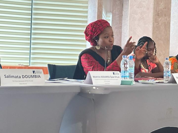 Namizata Sangaré, president of the National Human Rights Council (CNDH) of Côte d'Ivoire, then delivered a speech on promoting women's political participation. She handed the floor to Prof. Séraphine Nene Bi, who spoke on "Women and the Understanding of Power in West Africa." The director of the African Center for the History of Law, Institutions, and Political Ideas (CAHDIIP) then passed the microphone to Ivorian Senator Béatrice Diby, who discussed women's contributions to the nation's development.