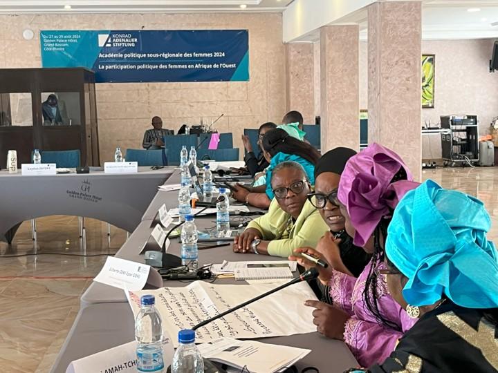 Dr Stefanie Brinkel, the resident representative of the Konrad-Adenauer-Stiftung (KAS) and director of the Regional Program for Political Dialogue in West Africa (PDWA), opened the event. This was followed by a panel that examined the current situation regarding women's political participation, highlighting the continuing low visibility of women in political contexts.