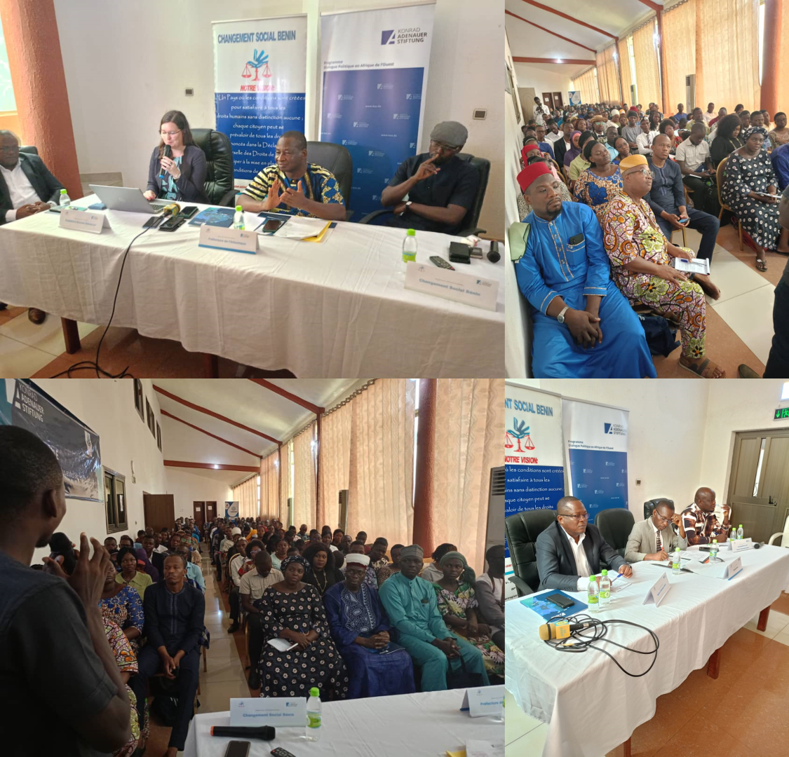 Subsequently, on 27 April, more than 200 people gathered during a popular forum in the same city were given the floor to ask their elected representative about his responsibilities, and to better understand the separation of specifications between the mayor and other elected officials. Agents from the public sector, the private sector, religious leaders, civil society and local residents were present for the discussions in front of Sébastien Dohou, representative of the Mayor of Calavi, who opened the session with Dr. Stefanie Brinkel, resident representative of KAS PDWA and Ralmeg Gandaho of Social Change Benin (CSB).