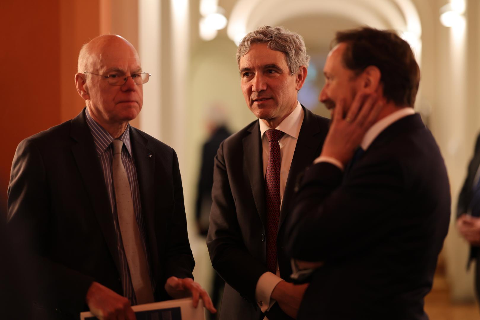 Im Anschluss an seinen Vortrag diskutierte Harbarth gemeinsam mit der Politikwissenschaftlerin Barbara Zehnpfennig von der Universität Passau und zwei Stipendiaten der Stiftung – Marlin Mayer und Marcel Tillmann – über das Erbe der liberalen Bewegung in Deutschland und Europa. Durch die Diskussion führte Meike Rosenplänter von Deutschlandfunk Nova. Für den festlichen Rahmen dieser Abendveranstaltung sorgten Verena Schulte (Flöte) und Josephine Mücksch (Klavier), beide Altstipendiatinnen der Stiftung, mit der Darbietung von Stücken von Clara Schumanns und Lili Boulanger.