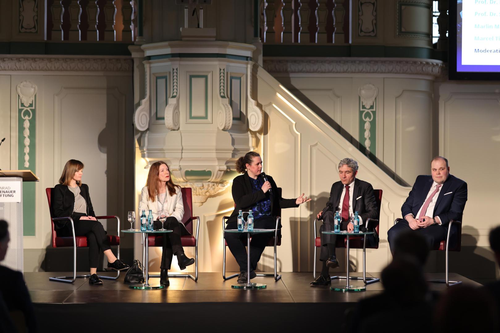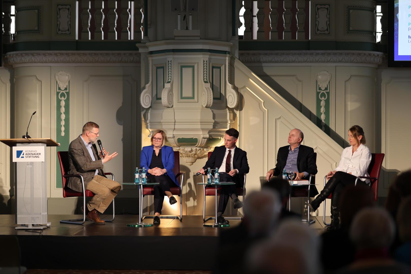 Anschließend sprachen Thomas Brechenmacher (Universität Potsdam), Sabine Freitag (Universität Bamberg), Ulrike von Hirschhausen (Universität Rostock) und Andreas Schulz (Kommission für Geschichte des Parlamentarismus und der politischen Parteien) unter der Moderation von Matthias Oppermann, Leiter Zeitgeschichte der Stiftung, über die Ursprünge und den Charakter der Revolution von 1848/49. Besonders kontrovers diskutiert wurde die Frage, ob die Revolution 1848/49 gescheitert sei. Mit Blick auf das unmittelbare Ergebnis sei die Revolution in der Tat gescheitert, so das Fazit, während sie langfristige gesellschaftliche Folgen gehabt habe, die durchaus etwas verändert habe.