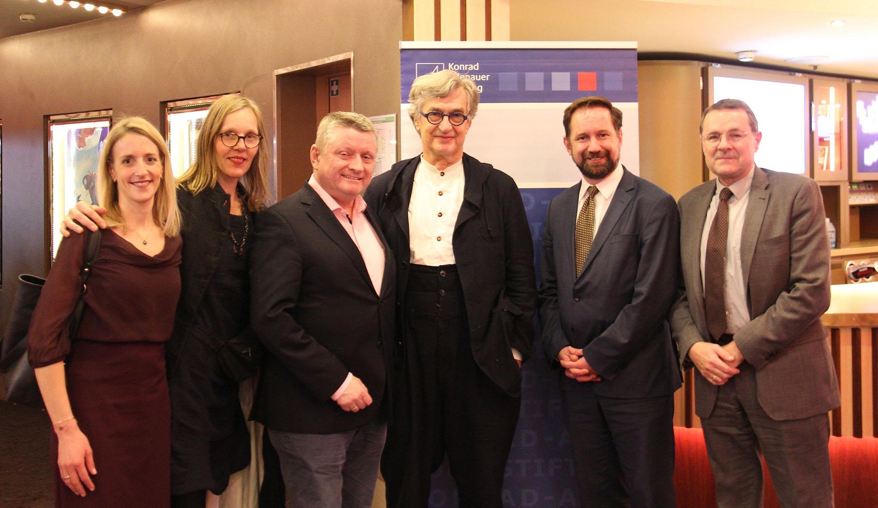 Zum anschließenden Filmgespräch begrüßte Dr. Kathrin Zehender, wissenschaftliche Referentin der Abteilung Zeitgeschichte, den stellvertretenden Vorsitzenden der CDU/CSU-Bundestagsfraktion und Beauftragten für Kirchen und Religionsgemeinschaften Hermann Gröhe MdB sowie Regisseur Wim Wenders, der gemeinsam mit seiner Frau Donata an der Veranstaltung teilnahm.