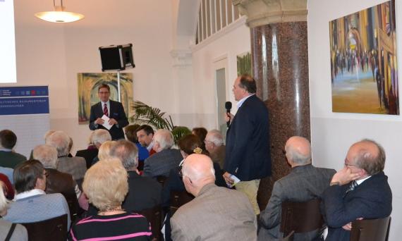 Zahlreiche Veranstaltungsteilnehmer meldeten sich noch mit Statements und vertiefenden Fragen zu Wort, bevor Dr. Christoph von Marschall noch einige Bücher der Gäste persönlich signierte. Von Marschall wies in seinem letzten Satz des Abends darauf hin, dass in seinem Buch über den aktuellen Vortrag hinaus vor allem dargestellt sei, wieso Deutsche und Amerikaner sich oft missverstehen. So ist auch zu erklären, dass er schlussfolgerte: "Die Amerikaner wählen einen amerikanischen Präsidenten und nicht einen, der Deutschen oder Europäern gefallen könnte."