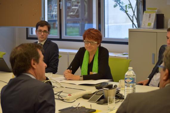 Anschließend trafen die Europaabgeordneten eine alte Bekannte aus dem Europäischen Parlament: Constance Le Grip, bisher EU-Abgeordnete und stellvertretende Fraktionsvorsitzende der EVP, wurde bei den französischen Parlamentswahlen in die Nationalversammlung gewählt, wo sie für die Républicains den Wahlkreis Neuilly-Puteaux vertritt. Gesprächsthema mit der Abgeordneten Le Grip war die Zukunft der traditionellen Parteien nach der Parlamentswahl sowie deren Umgang mit der Bewegung „La République en Marche“ von Präsident Macron, die bei den Wahlen die absolute Mehrheit erringen konnte.