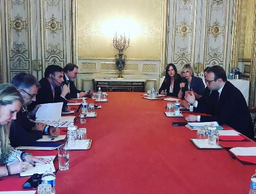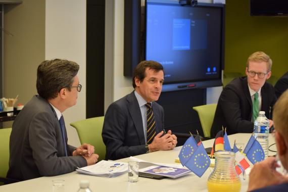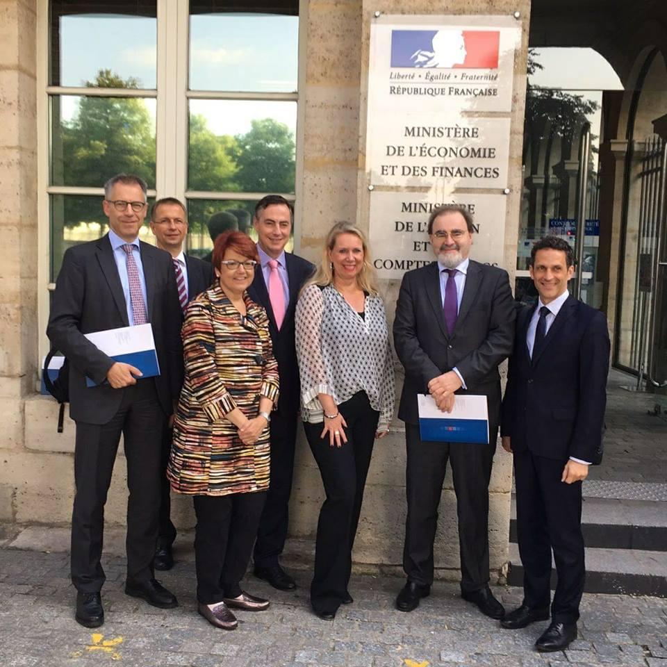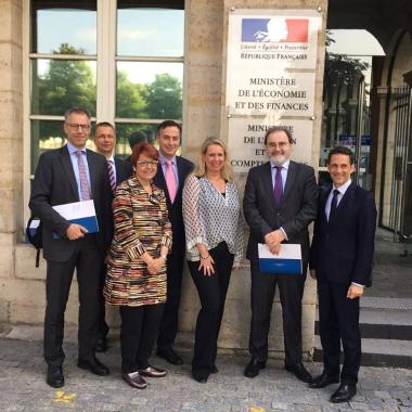 Im Wirtschafts- und Finanzministerium fand ein Gesprächstermin mit Emmanuel Moulin, dem Kabinettsleiter des französischen Wirtschaftsministers Bruno Le Maire, statt. Moulin erklärte, weshalb die Reform des französischen Arbeitsrechts mit der neuen Regierung unter Edouard Philippe – ganz im Gegensatz zur vorherigen Regierung – durchsetzbar sei: Präsident Macron habe nämlich schon im Wahlkampf mit seinem Reformprojekt geworben und damit von den Bürgern durch seine Wahl Vertrauen und Legitimation für seine Modernisierungspläne bekommen. Dem Beschluss des Arbeitsgesetzes solle nun ein transparenter Einigungsprozess mit den Sozialpartnern vorangehen, um soziale Konflikte und Streiks zu vermeiden.