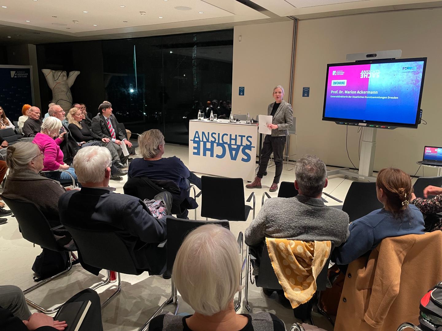 Prof. Ackermann verwies auf die historische Verankerung von Gewalt in der Kunstgeschichte und deren Bezug zur Gegenwart. Sie plädierte dafür, Werke von Frauen sichtbarer zu machen und historische Darstellungen von Gewalt gegen Frauen kontextualisiert zu diskutieren. Dies könne sowohl kulturelle Institutionen als auch öffentliche Diskurse bereichern.