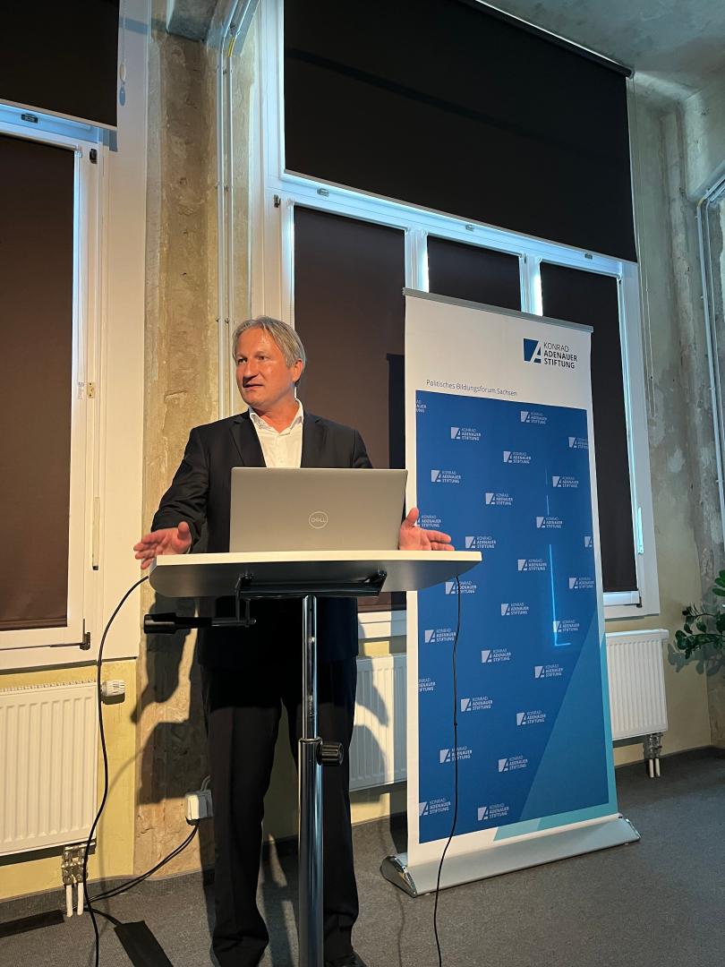 „KI.ne Grenzen – Realität und Zukunftsfähigkeit von Künstlicher Intelligenz“ hieß die Veranstaltungsreihe des Politischen Bildungsforums der Konrad-Adenauer-Stiftung Sachsen in Kooperation mit dem KI-Netzwerk Dresden. Im historischen Gebäude der Yenidze konnten sich Gäste und Experten zu drei Veranstaltungen miteinander austauschen. Dabei wurden unterschiedliche Perspektiven rund um das Thema KI intensiv beleuchtet und verständlich vermittelt. Den Gästen wurde ein Einblick in die spannende und komplexe Welt der Künstlichen Intelligenz ermöglicht.