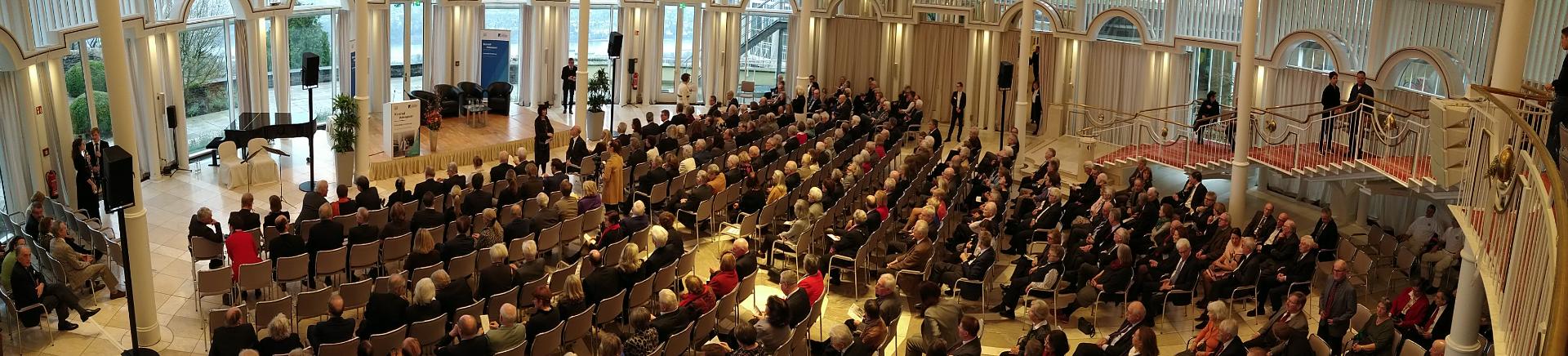 So lag es nahe, dass bei der Festveranstaltung mit über 400 Persönlichkeiten aus allen Bereichen der Gesellschaft die Kultur und die Musik eine wesentliche Rolle spielten, und zwar in ihrem komplizierten und vielfältigen Zusammenhang mit Staat und Gesellschaft. Dazu versammelte Dr. Helge Matthiesen, Chefredakteur des Bonner General-Anzeigers, ein spannendes Podium mit Isabel Pfeiffer-Poensgen, Ministerin für Kultur und Wissenschaft des Landes NRW, Prof. Dr. Christian Höppner, Generalsekretär des Deutschen Musikrates und Ashok Sridharan, Oberbürgermeister von Bonn, um sich.