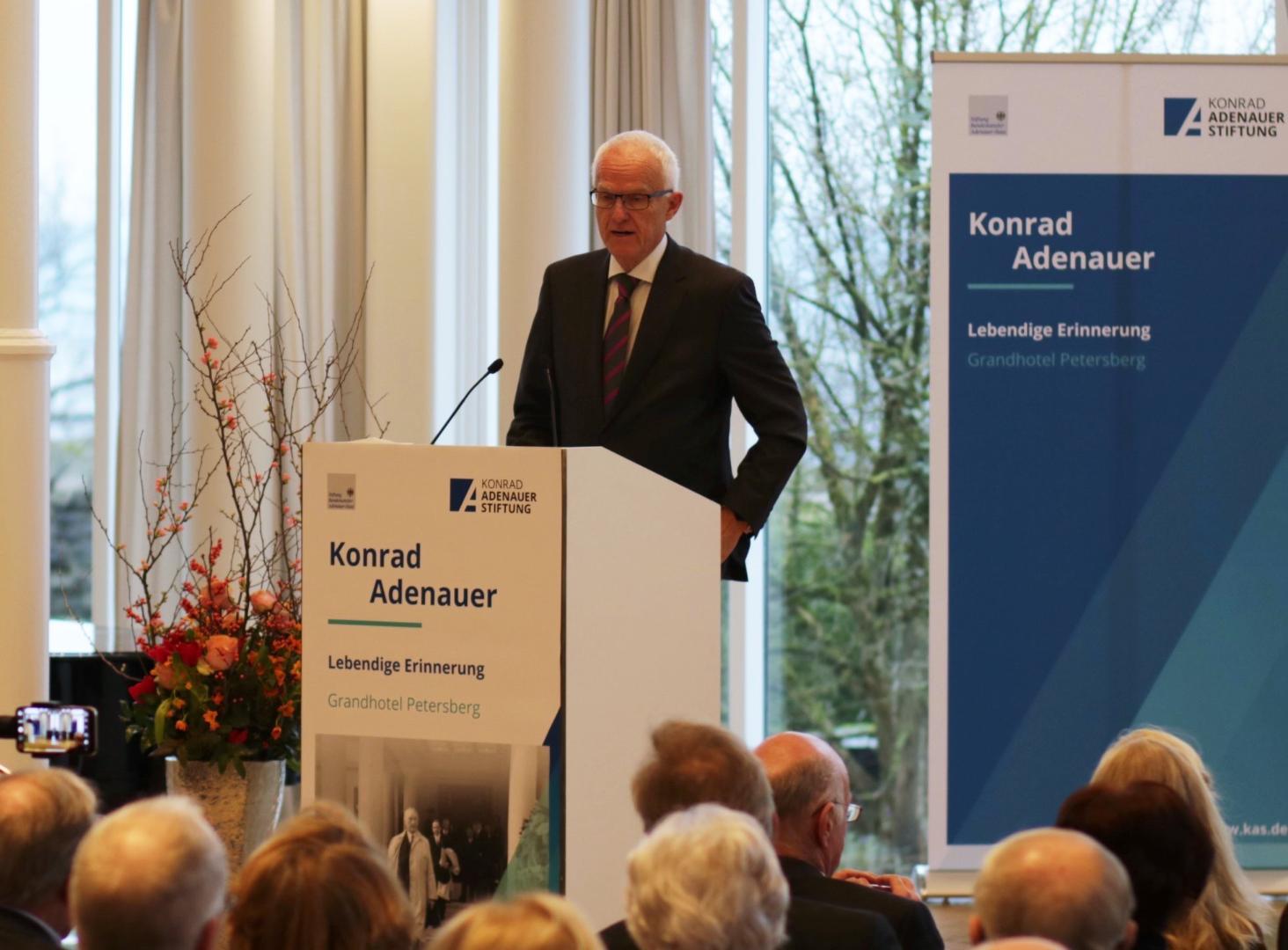 Bei seiner Begrüßung konnte Prof. Dr. Norbert Lammert, Vorsitzender der Konrad-Adenauer-Stiftung, feststellen, dass der Kreis der „Gratulanten“ zum Geburtstag des ersten Kanzlers der Bundesrepublik Deutschland von Mal zu Mal größer wird, und irgendwann auch die riesige Rotunde des geschichtsträchtigen Prachtbaus über dem Rhein nicht mehr alle fassen wird. Das mag – so vermutete Lammert – in diesem Jahr auch daran gelegen haben, dass neben Konrad Adenauer auch ein zweiter Rheinländer von Weltrang sein besonderes Jubiläum hat: Ludwig van Beethoven, dessen 250. Geburtstag das ganze Jahr über aufwendig gefeiert wird.