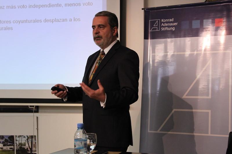 En su ponencia el politólogo y especialista en opinión pública, Carlos Fara, discutió las tendencias y ciclos electorales de los argentinos. Además dio una perspectiva hacia las elecciones parlamentarias del 27 de Octubre. Según él, la segregación electoral es una de las tendencias más importantes de la Argentina después del retorno a la democracia. Es la traducción electoral de la fragmentación social del país y se puede atribuir a los ingresos desiguales como también a las diferencias entre el espacio urbano y rural.