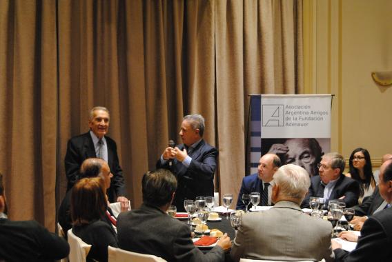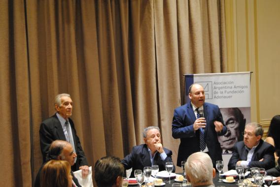 El presidente de dicha asociación, Roberto Caldo, dio inicio al evento con unas palabras de bienvenida. Olaf Jacob, el representante de la KAS en Argentina la buena cooperación que las dos organizaciones tienen hace años. Además, mencionó la importancia de las relaciones diplomáticas entre Alemania y Argentina que se pone de manifiesto sobre todo ahora, con la visita de la canciller alemana, Angela Merkel.