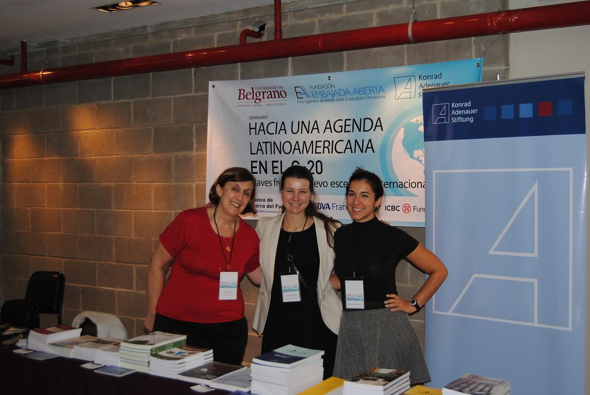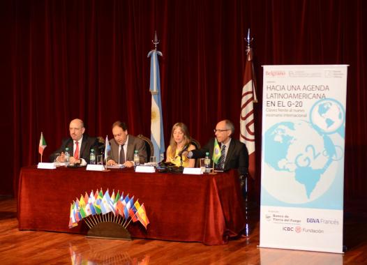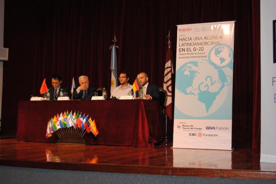 El director de la Universidad, Patricio Degiorgis saludó los expositores y el público. El experto de Alemania, Dr. Jakob Schwab dio inicio con su discurso sobre la agenda del G-20 y acentuó la importancia de comercio internacional y los incentivos al desarrollo. Su par de China, el Prof. Song Hong explicó la función del G20 como foro para los líderes de las grandes potencias. El experto argentino, el Dr. Felix Peña advirtió acerca al populismo creciente, el proteccionismo y la fragmentación del comercio mundial.