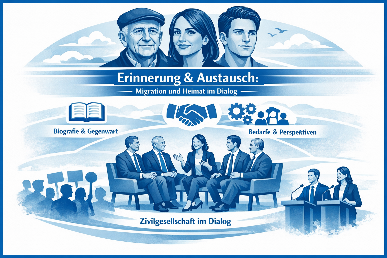 Die Veranstaltung bietet einen gesellschaftspolitischen Dialograum, in dem Zeitzeug:innen, Spätaussiedler:innen und Vertriebenen sowie ihre Nachkommen ihre Erfahrungen teilen. Im Mittelpunkt stehen sowohl biografische Rückblicke als auch aktuelle Bedarfe, Herausforderungen und Erwartungen an Politik und Gesellschaft. Die Zivilgesellschaft wird aktiv einbezogen.