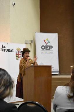 María Eugenia Choque, Vocal del Tribunal Supremo Electoral (TSE), presentó su comentario en aymara y en español y apeló en la inclusión de las lenguas indígenas en la política boliviana. Ruth Yarigua, asambleísta departamental Guaraní, comunicó su opinión sobre las traducciones en guaraní y español.