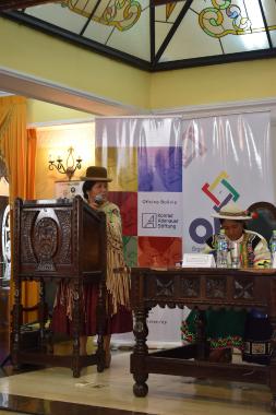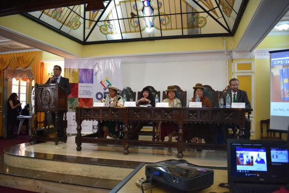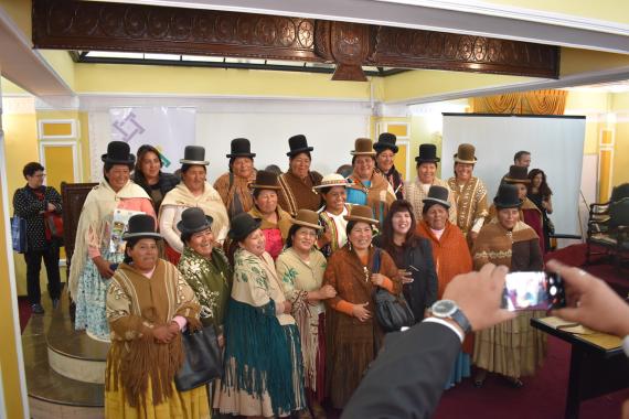 La entonación del Himno Nacional en Aymara dio comienzo a un evento multilingüe y multicultural. Tanto las palabras de bienvenida por parte de la Dra. Florencia Laruta Flores, Vicepresidente TED La Paz, como también el comentario de María Eugenia Choque, Vocal del Tribunal Supremo Electoral (TSE), fueron presentadas en aymara y español. La asambleísta Ana Alicia Layme Kuno comentó la publicación en quechua y español. Todas destacaron la importancia de las traducciones y se comprometieron a la difusión del producto en el área rural.