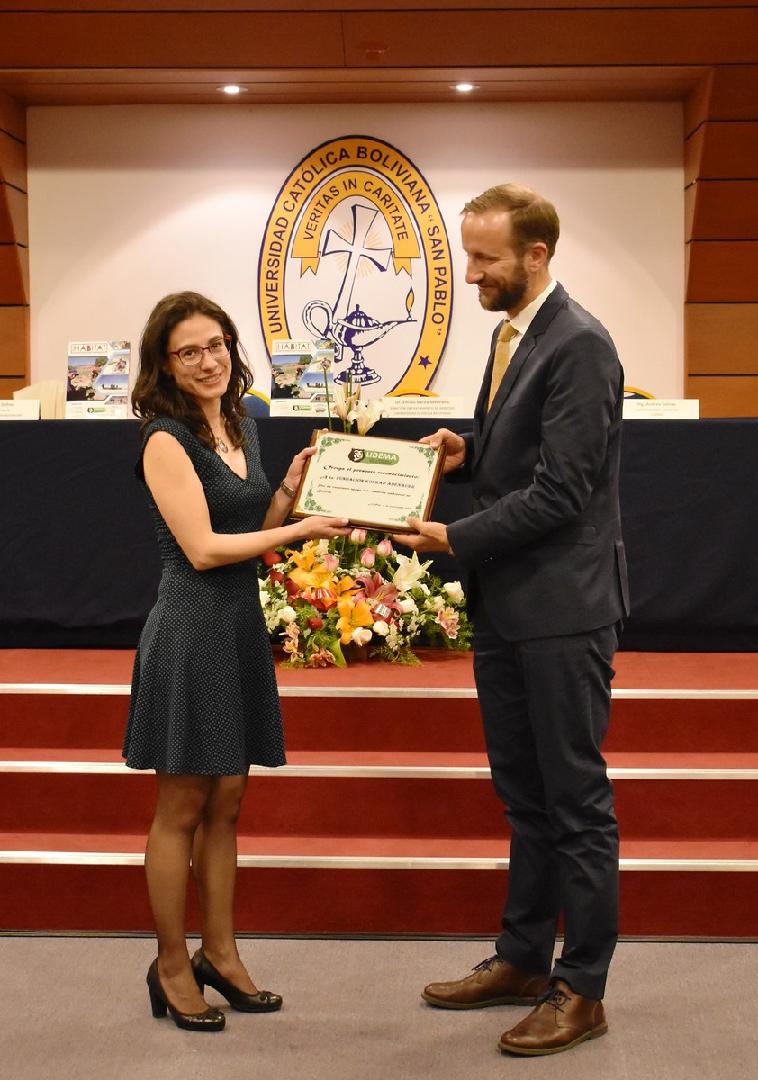 Jorge Arando, quien también es autor de uno de los capítulos del libro, expuso en una presentación la importancia de la protección del medioambiente en Bolivia como en el mundo a través de muchos datos y cifras. Después, Marcelo Escobar se refirió a un tema concreto de la publicación y explicó la historia y la relevancia de las áreas protegidas en Bolivia; posteriormente los participantes tuvieron la oportunidad de hacer preguntas a los expertos. El evento fue concluido con un brindis de honor y por la entrega de reconocimientos a la KAS por parte de LIDEMA.