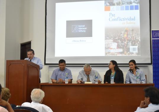 La temática de la “Paz” y la construcción del dialogo para la “Paz”, es sin duda, uno de los pilares importantes de la cooperación y del trabajo de la Oficina Bolivia de la Fundación Konrad Adenauer (KAS). América Latina en general se caracteriza por una creciente conflictividad en los diferentes estratos e instituciones de la sociedad, evidencia empírica resalta el hecho que sociedades menos conflictivas tienen una tendencia a crecer más y mejor.