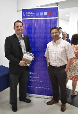 Los días miércoles y jueves, 18 y 19 de abril de 2018, la Fundación Konrad Adenauer (KAS) Bolivia invitó a los estudiantes y docentes de la Universidad Autónoma Gabriel René Moreno y de la Universidad NUR a la presentación del libro Paz y Conflictividad en Bolivia en la ciudad de Santa Cruz de la Sierra.