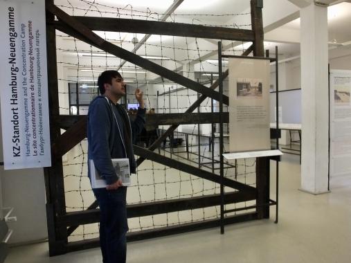 Nach der Einführung konnten sich die Teilnehmer im Detail mit den Lebens- und Arbeitsbedingungen in Neuengamme befassen. Ein Gang durch die Ausstellung bot den Besuchern die Gelegenheit, mehr über den Alltag eines Häftlings zu erfahren, Dokumentationen von den Verbrechen sowie Biographien zu lesen und erhaltende Gegenstände von damals zu betrachten. So konnten die Schülerinnen und Schüler anhand eines Bettes von damals sich vorstellen, wie schlecht die Unterbringung der Häftlinge war. Denn eine Baracke war zum Beispiel im letzten Kriegsjahr mit weit über 2.000 Menschen belegt, um das Elend zu veranschaulichen.