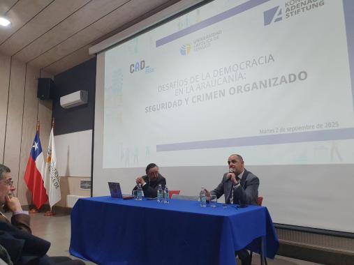 Sobre esto expusieron el experto de CADLatam, Pablo Zeballos y el fiscal del Ministerio Público, Miguel Ángel Velásquez en el seminario que realizamos junto al Centro de Análisis para la Democracia-CADLatam y la Universidad Católica de Temuco, con gran asistencia de la comunidad universitaria, encabezada por el decano de la Facultad de Ciencias Jurídicas, Económicas y Administrativas de la Universidad Católica de Temuco, Juan Pablo Beca Frei.