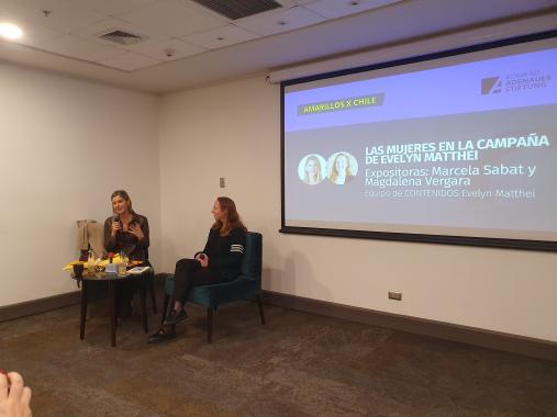 Luego Marcela Sabat y Magdalena Vergara del equipo de contenidos Evelyn Matthei nos dieron una perspectiva a las mujeres en la campaña de Evelyn Matthei. Cerramos con una exposición sobre políticas públicas con enfoque de mujer por parte de Carolina Goic (Exsenadora y presidenta Fundación Todas).
