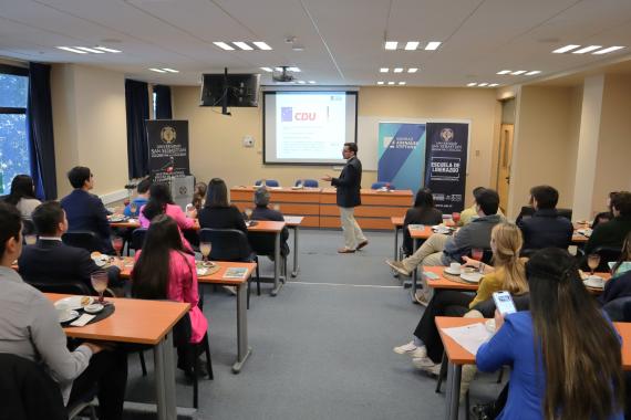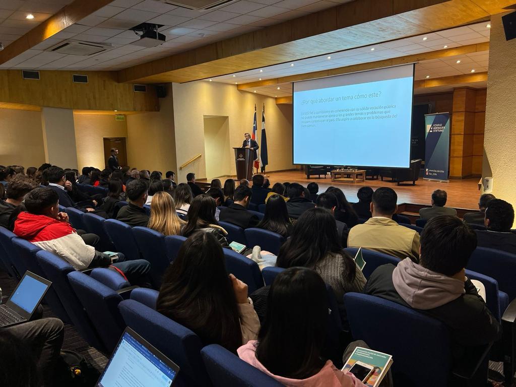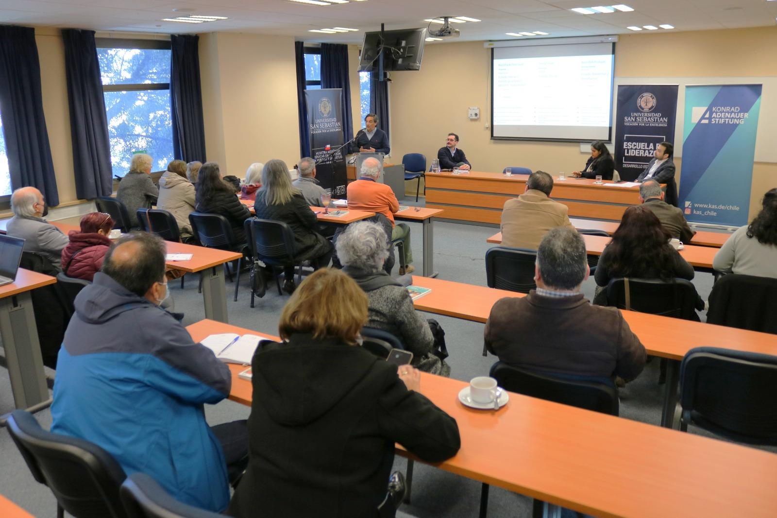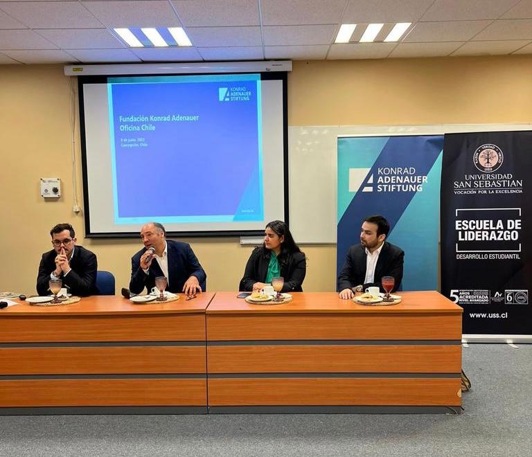 Más tarde el Dr. Eugenio Yáñez, filósofo y experto en economía social de mercado, dio una presentación entorno a la discusión sobre el Estado social en Chile, a lo que le siguió un debate junto a estudiantes en el que participaron Álvaro Ortíz, alcalde de Concepción, Jorge Sabag, ex diputado, Javier Álvarez, empresario local; y Eric Aedo, diputado.