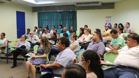 Andrés Barrantes moderó el conversatorio realizando preguntas específicas a cada uno de los expertos invitados y facilitando la discusión entre los representantes de asadas, autoridades municipales, funcionarios del sector público y productores.
