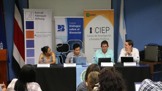 Los panelistas que colaboraron en la discusión fueron: Andrés Barrantes, experto en Gestión Ambiental y Desarrollo Local, José Miguel Zeledón, Director de Aguas del MiNAE y encargado del Programa Integral de Abastecimiento de Agua para Guanacaste – Pacifico Norte (PIAAG), Eunice Contreras, integrante del Comité Pro Defensa y conservación del agua de Sardinal y Leonardo Merino, Coordinador del Informe Estado de la Nación.