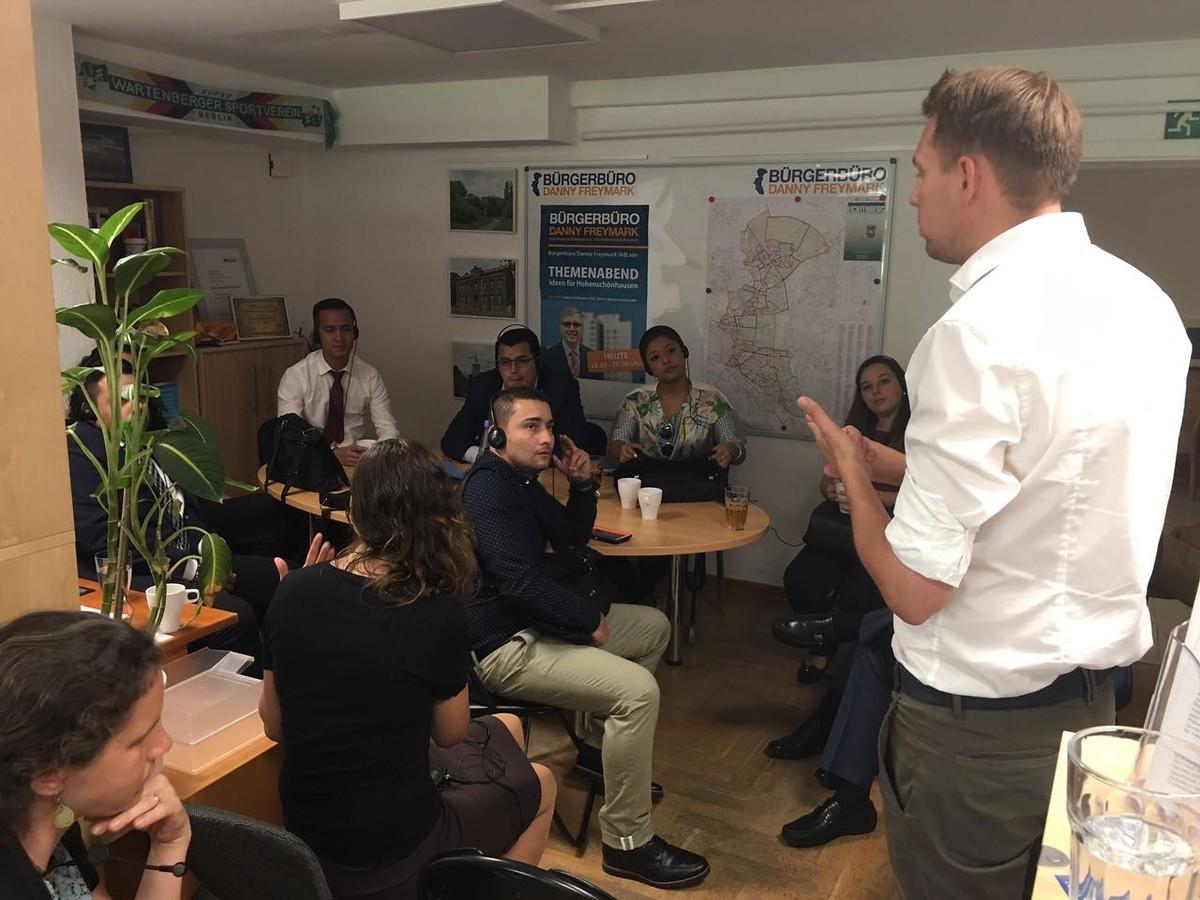 Comunicación y estrategia de campañas electorales fueron temas centrales, tanto en el Konrad Adenauer Haus, sede central de la CDU, y en el transcurso de la conversación con el presidente de la comisión internacional de Junge Unión Ruben Schuster. Conocimos el trabajo del grupo de jóvenes del grupo parlamentario CDU / CSU, encabezada por MP Steffen Bilger y el trabajo de la oficina de un miembro del Bundestag. Tambien conocimos el trabajo en la circunscripción Nueva Hohenschönhausen de Berlín durante la visita al MDA Danny Freimark, quien tiene como parte integral de su estrategia la comunicación activa con los ciudadanos y la resolución de problemas concretos.
