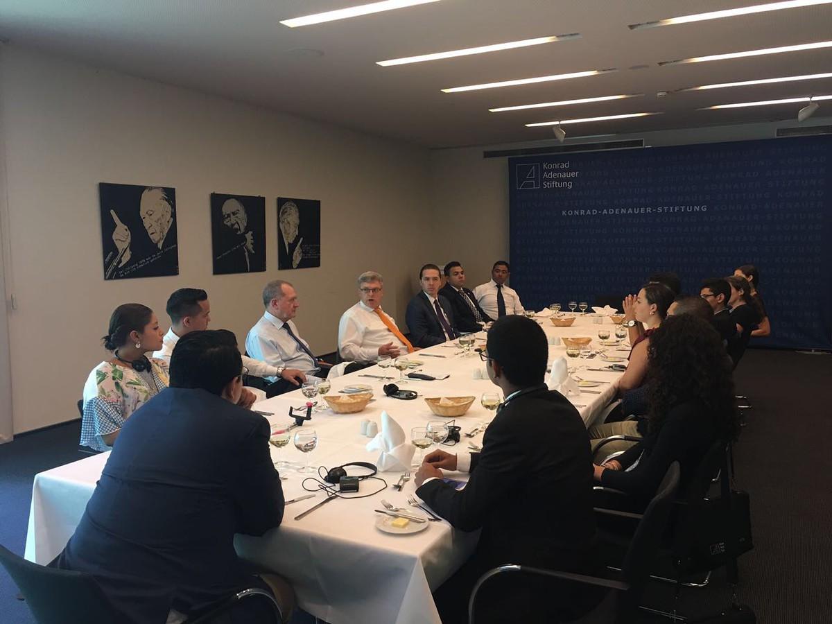 Las conversaciones en la sede de la KAS eran un intercambio de experiencias sobre las cuestiones internacionales, con énfasis en las relaciones entre América Latina y, específicamente, América Central, Alemania y Europa. Interlocutores eran el jefe suplente del departamento central de cooperación europea e internacional (HA EIZ) de la KAS, Frank Pries y el director del Equipo Regional de América Latina, Markus Rosenberger. Una profundización se dio con la Dra. Christina Krause sobre el tema de la migración. En Alemania muchas veces la gente no esta conciente que la migracion no solo presenta un desafio en Europa. La migración desde Cuba en los países de América Central a los EE.UU. y los movimientos de refugiados de Venezuela en esta región son, en particular para los pequeños países de América Central financieramente y estructuralmente problemas enormes. Cabe destacar los esfuerzos humanitarios de estos países, donde Costa Rica ha jugado un papel pionero.
