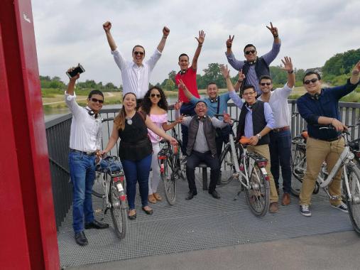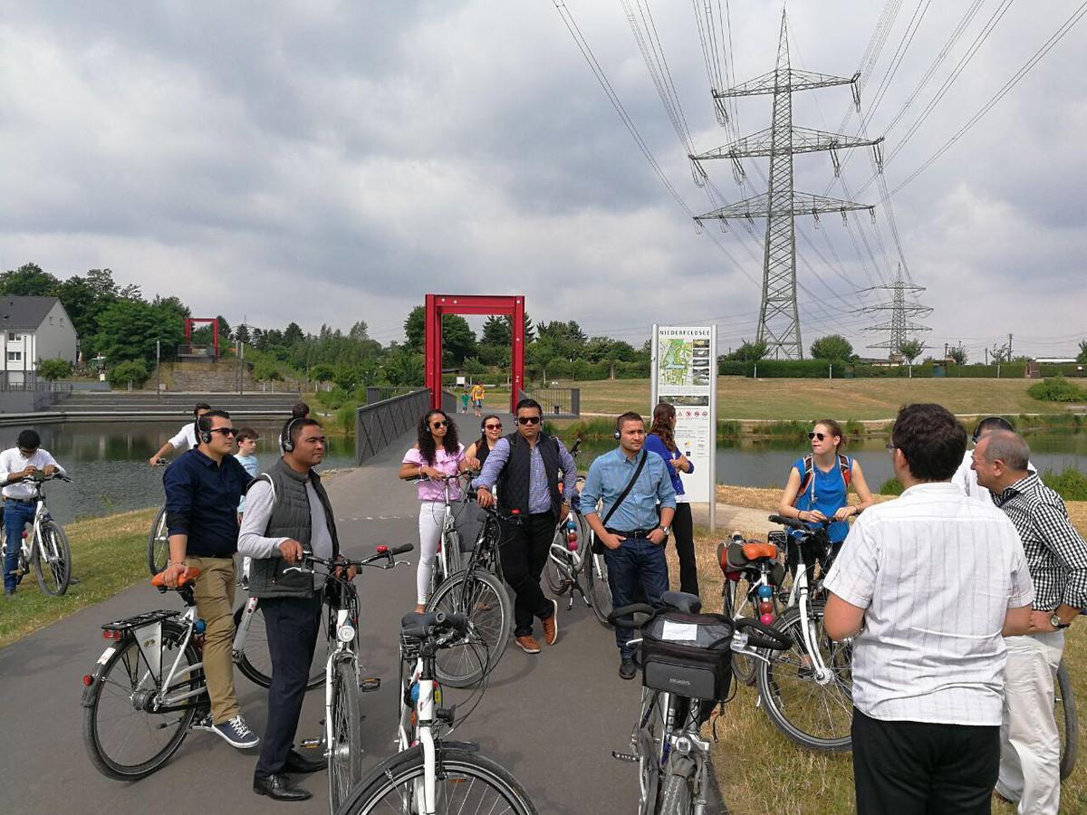 En el seguiente dia los participantes de América Central experimentaron en bicicleta en el primer Radschnellweg (vía rápida de bicicletas) de Alemania (RS1 ). Aquí, en las estaciones intermediarias fueron informados sobre el concepto y la historia de ese camino por Christian Weirich del equipo movilidad en la Asociación Regional del Ruhr. Este punto fue parte de un programa político denso y los participantes no solo lo usaron como oportunidad bienvenida para divertirse pero tambien a discutir cuestiones específicas y evaluacion de ese concepto para zonas densamente pobladas en sus propios países. Tambien se conocio la ciudad de Essen, con una introduccion a la cultura del "carbón y mineros" en el Zollverein, despues de una reunión con MdL Fabian Schrumpf y el presidente del distrito de la Junge Unión Nils Sotmann. Por último, el Alcalde de la ciudad de Essen, Thomas Kufen ofreció una recepción política. En su intervención, el Alcalde explicó la transformación de la region antiguamente dominada por el carbón y la economía de acero en una economía de servicios.