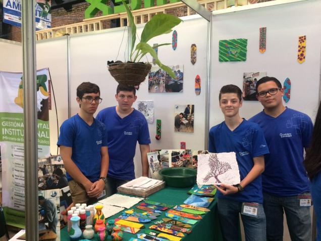 Durante la feria los estudiantes ofrecieron a los visitantes una exhibición de artesanías elaboradas con residuos. Mostraron vasijas, separadores de libros y recuadros hechos con papel reciclado e impartieron charlas sobre el proceso de elaboración.