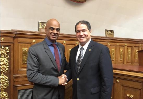 Insbesondere der Aufenthalt in Venezuela, wo der Widerstand der Bevölkerung gegen das Regime der Sozialistischen Einheitspartei PSUV seit nunmehr über 60 Tagen ungebrochen ist, stellte eine Herausforderung dar. Dabei hatte die öffentliche Veranstaltung in der Asamblea Nacional, dem Parlament von Venezuela, das die einzige von der Regierung nicht gleichgeschaltete demokratische Institution repräsentiert, eine besondere Bedeutung. Ebenso wie bei der am darauf folgenden Tag in der Katholischen Universität Andrés Bello (UCAB) durchgeführten Veranstaltung war das Thema: „Die Rolle des Parlaments in der Demokratie“. Die Konrad-Adenauer-Stiftung unterstütze diese Veranstaltungen durch das regionale Rechtsstaatsprogramm mit Sitz in Bogotá, Kolumbien sowie dem Länderprogramm Venezuela. Neben dem Abgeordneten Charles Huber, der die Aufgaben des Parlaments in der Demokratie erläuterte und die konkrete Parlamentarierarbeit darstellte, beleuchtete Prof. Dr. Torsten Stein von der Universität des Saarlandes die Rolle des Parlaments aus rechtsstaatlicher Sicht und betonte insbesondere dessen Bedeutung als Legislativorgan und zentrales Element der Gewaltenteilung. Die Realität der Abgeordneten des Parlaments von Venezuela schilderte eindrucksvoll der Vorsitzende des Auswärtigen Ausschusses in der Asamblea Nacional Luis Florido. Im Parlament verfügt die Opposition zwar eine Zweidrittelmehrheit. Der regimetreue Oberste Gerichtshof hat jedoch das Parlament wegen eines Streits um drei Provinzabgeordnete für nicht verfassungsgemäß und damit alle Beschlüsse pauschal für ungültig erklärt. Die Abgeordneten beziehen deshalb seit Monaten kein Gehalt und erhalten keinerlei Aufwandsentschädigung für deren Mitarbeiterstab und den Parlamentsbetrieb. Mehreren Abgeordneten wurden inzwischen die Pässe annuliert, so dass diese weder international reisen noch nationale Flüge tätigen können.