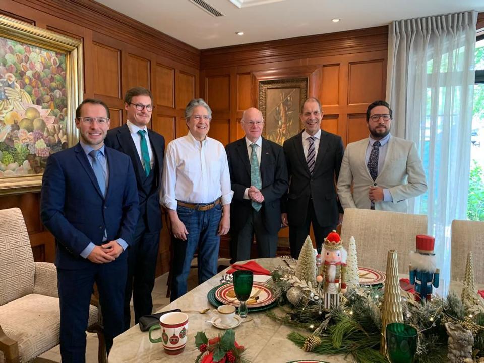 An dem Austausch mit Präsident Guillermo Lasso und Außenminister Juan Carlos Holguín nahmen neben dem Stiftungsvorsitzenden auch der Stellvertretende Generalsekretär Dr. Gerhard Wahlers, Auslandsmitarbeiter Dr. Robert Helbig und der zukünftige Auslandsmitarbeiter Ecuador, Johannes Hügel, teil.