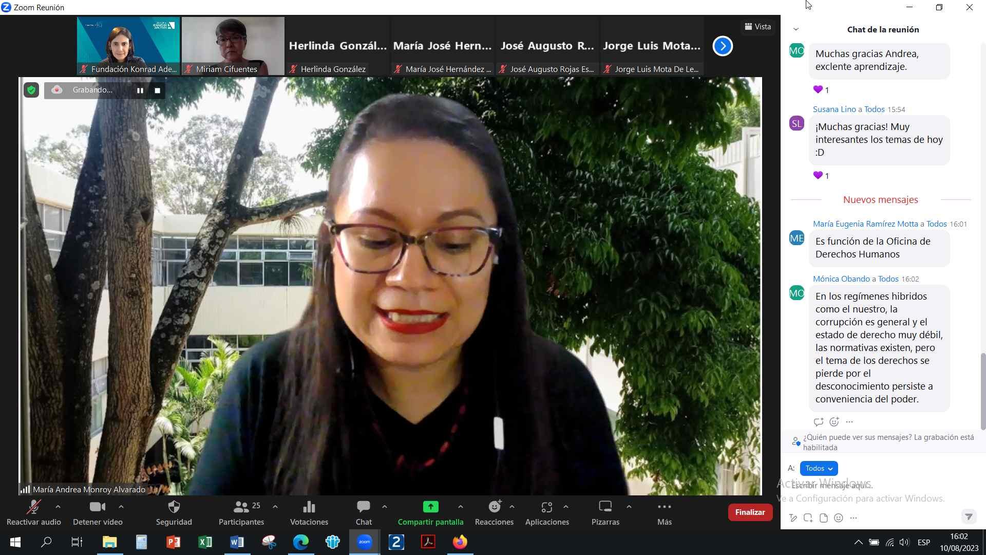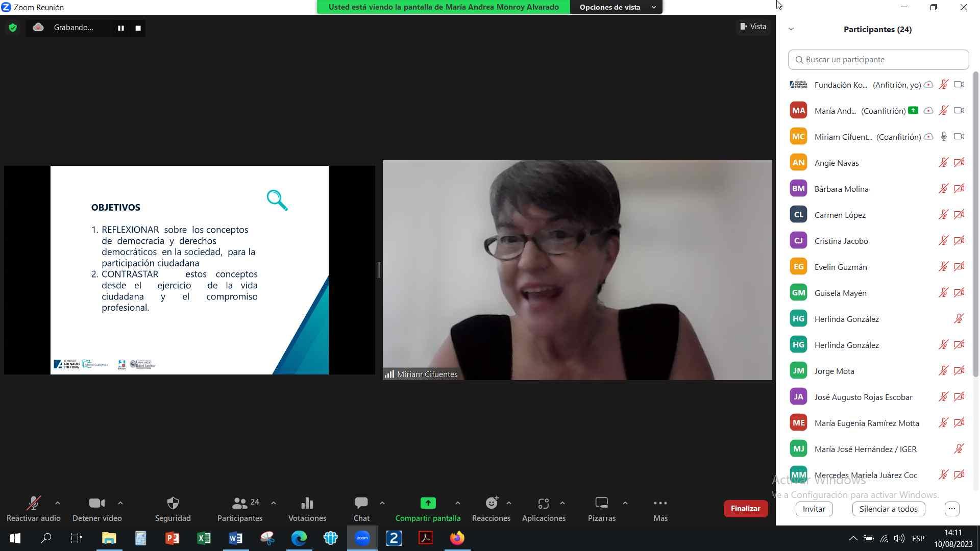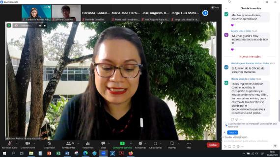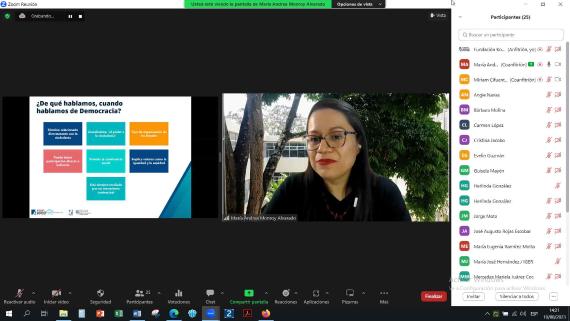 La docente del taller: Miriam Cifuentes expuso sobre el tema: Democracia y participación ciudadana.